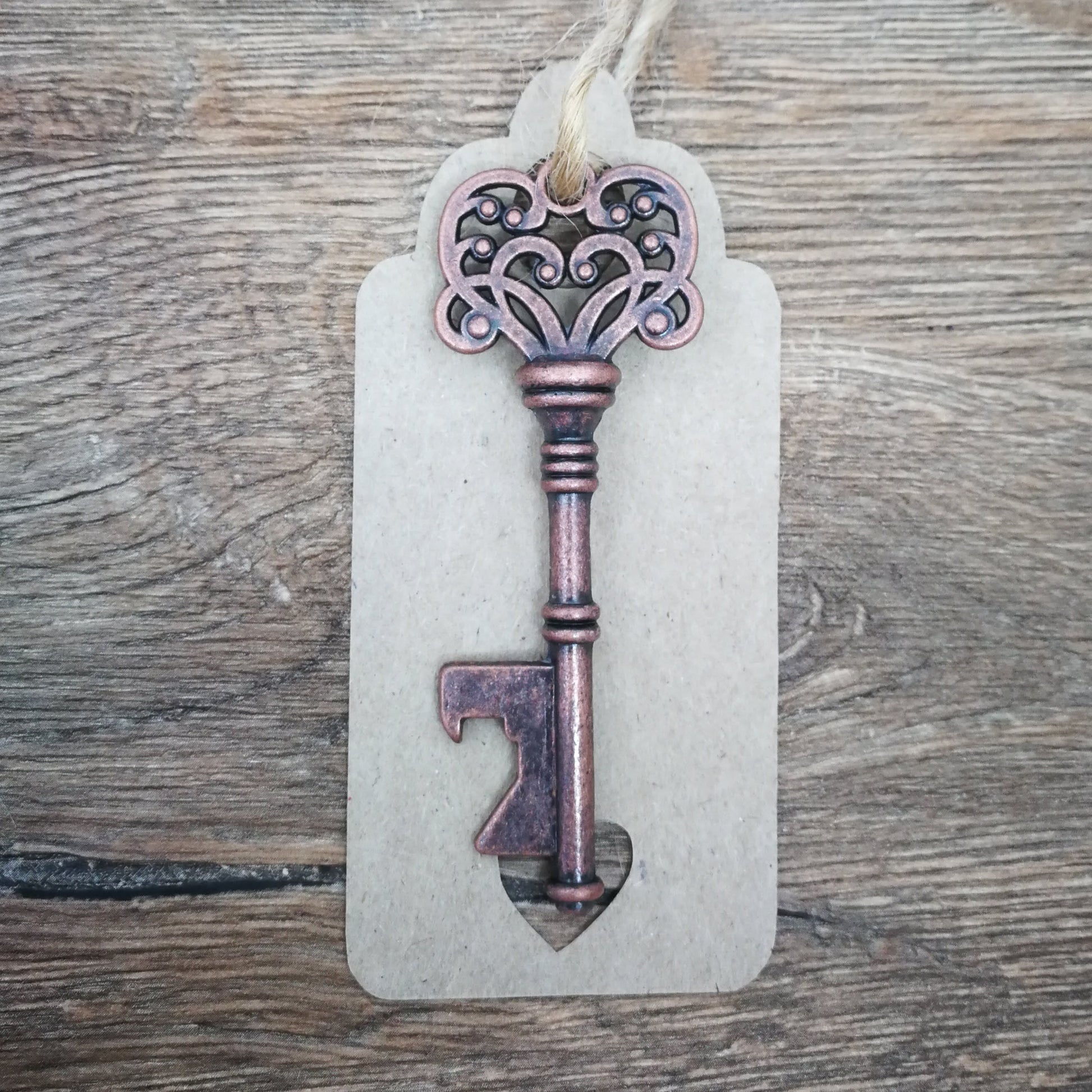 Vintage Copper Key Keyring Bottle Opener with Tag