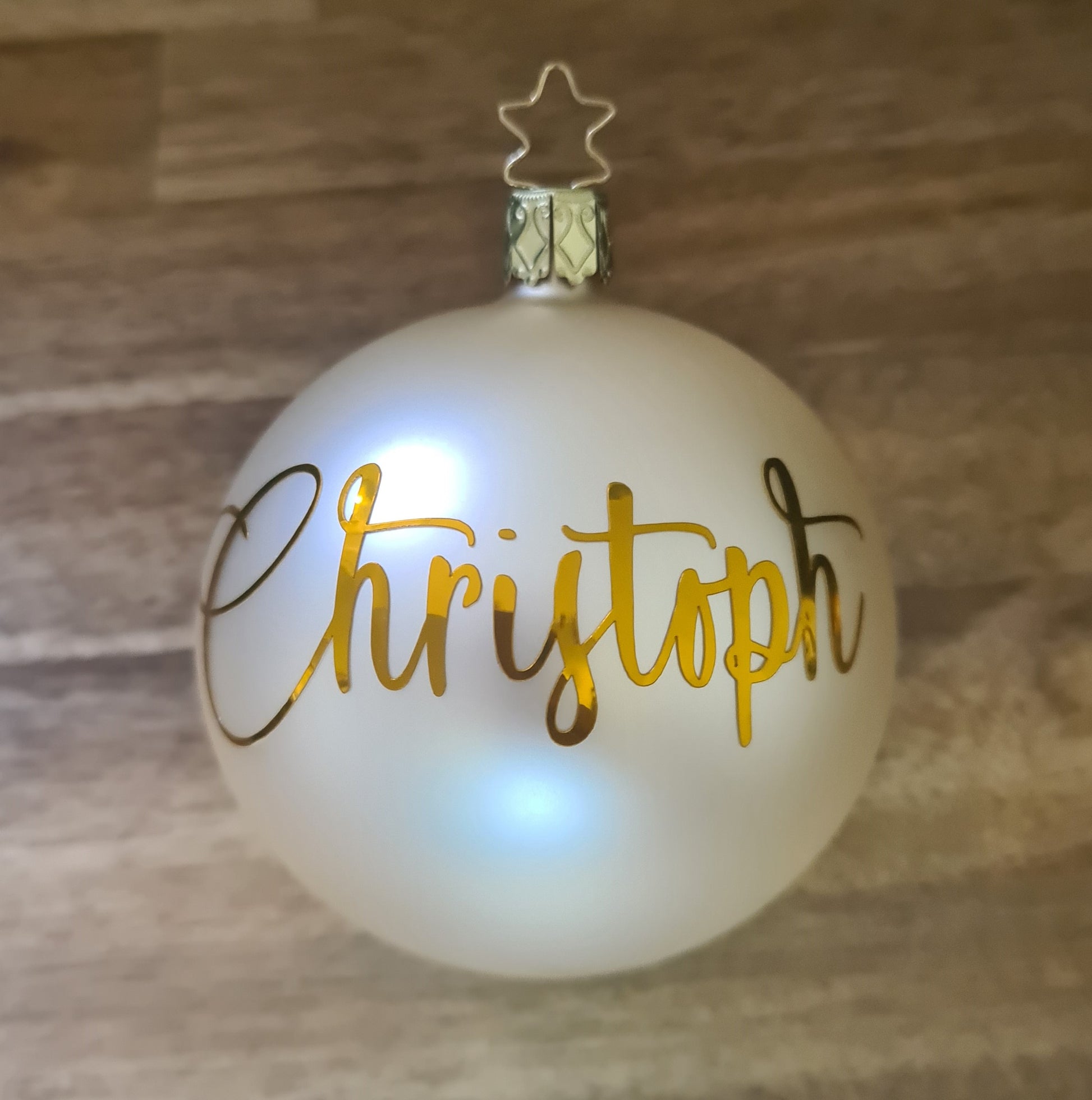 Diese personalisierte, mundgeblasene Weihnachtskugel macht aus eurem Weihnachtsbaum etwas ganz Besonderes. Das erste Weihnachtsfest eures Babys, euer Hochzeitstag oder die Namen von geliebten Menschen können euren Tannenbaum schmücken.