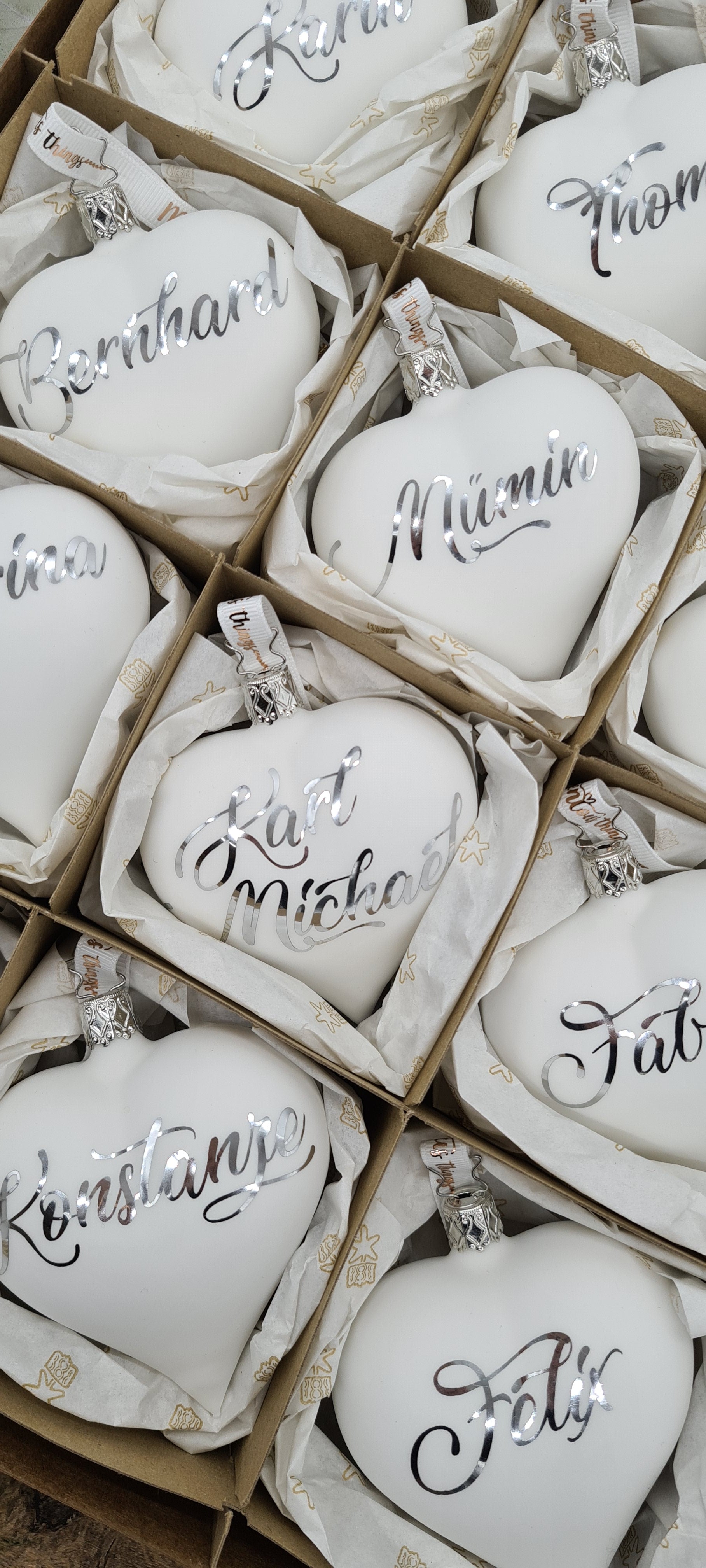 2: Dein Herz wird in einer personalisierten Box mit dem gleichen Namen wie deine Glasherzen geliefert.