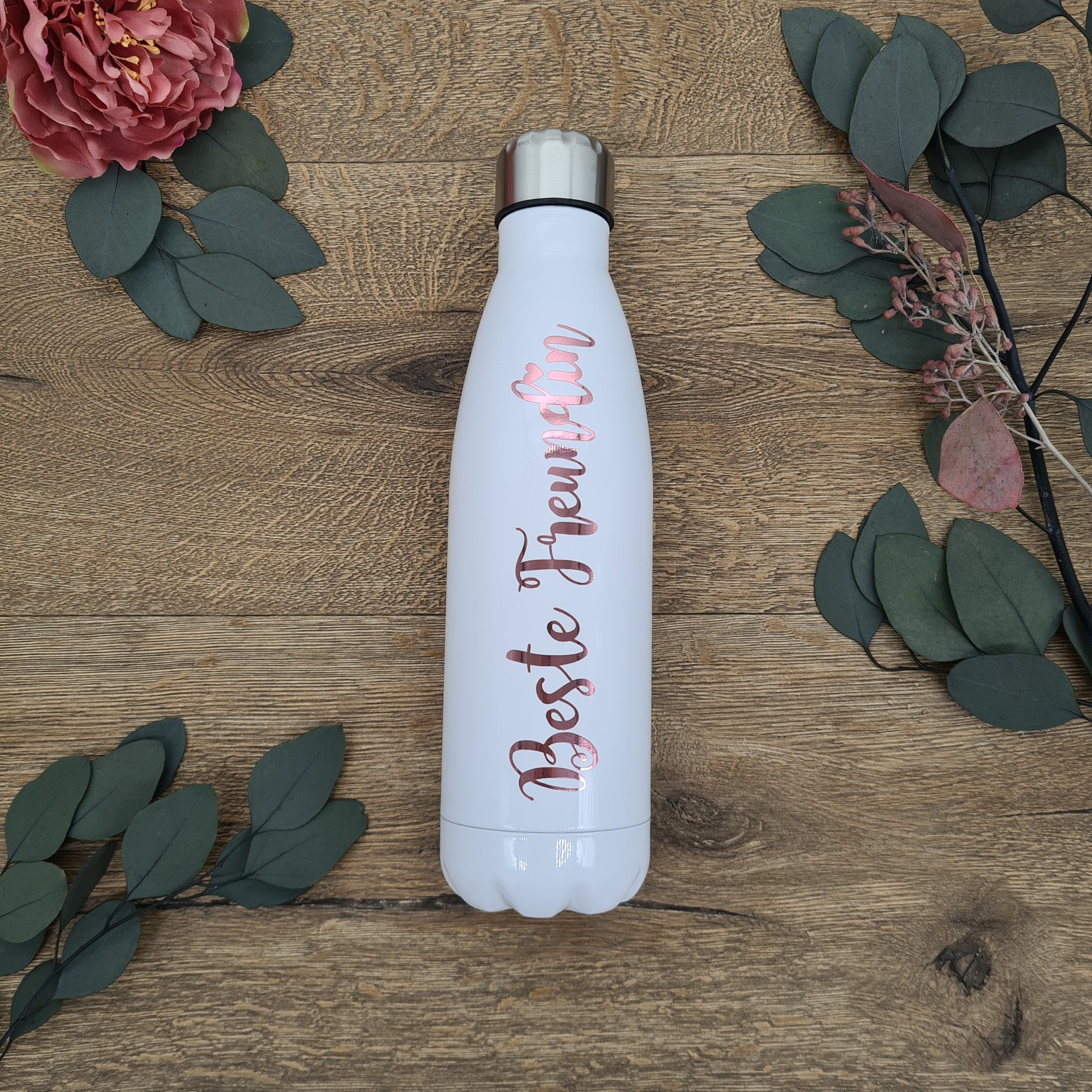 Rose Gold Name on a White Thermo Bottle