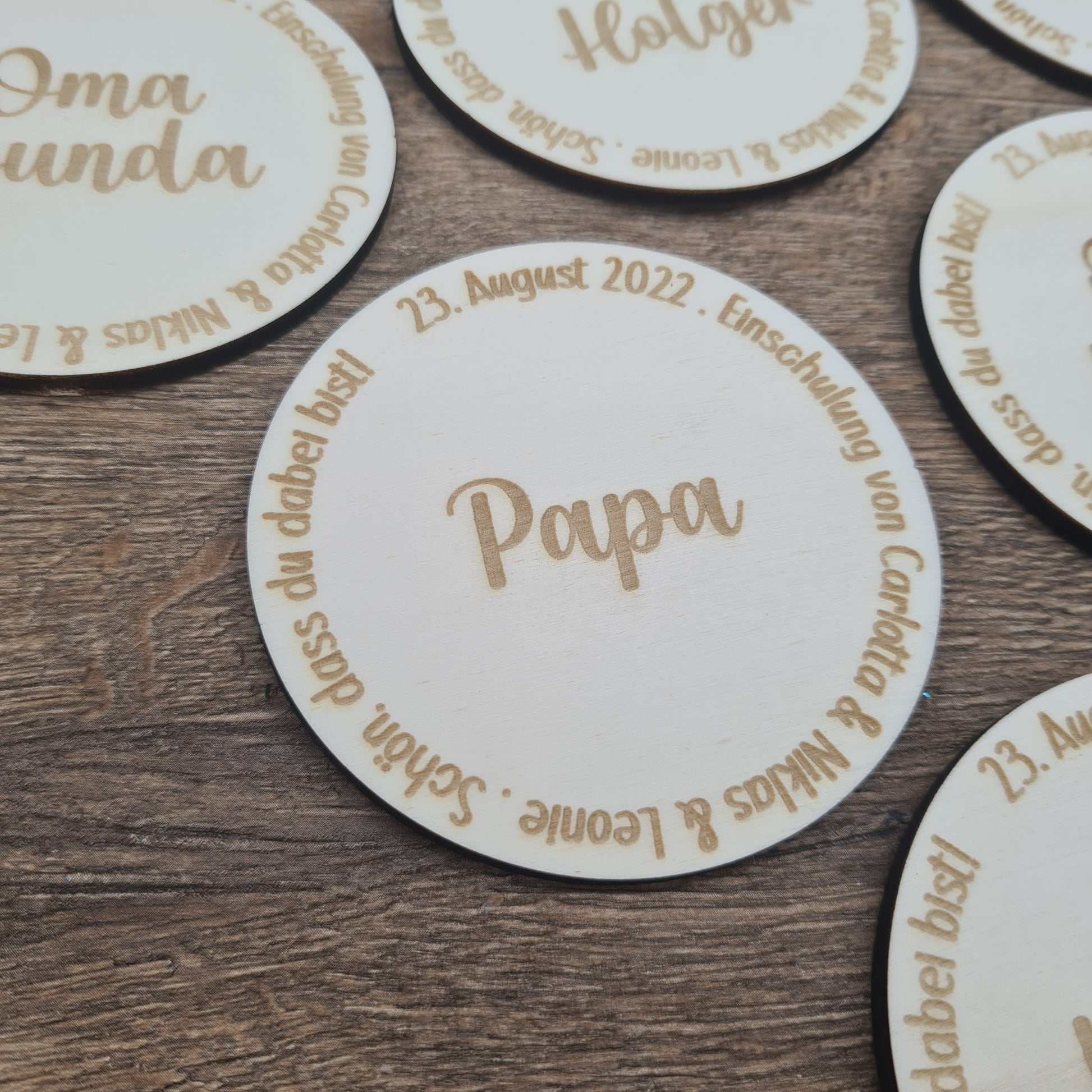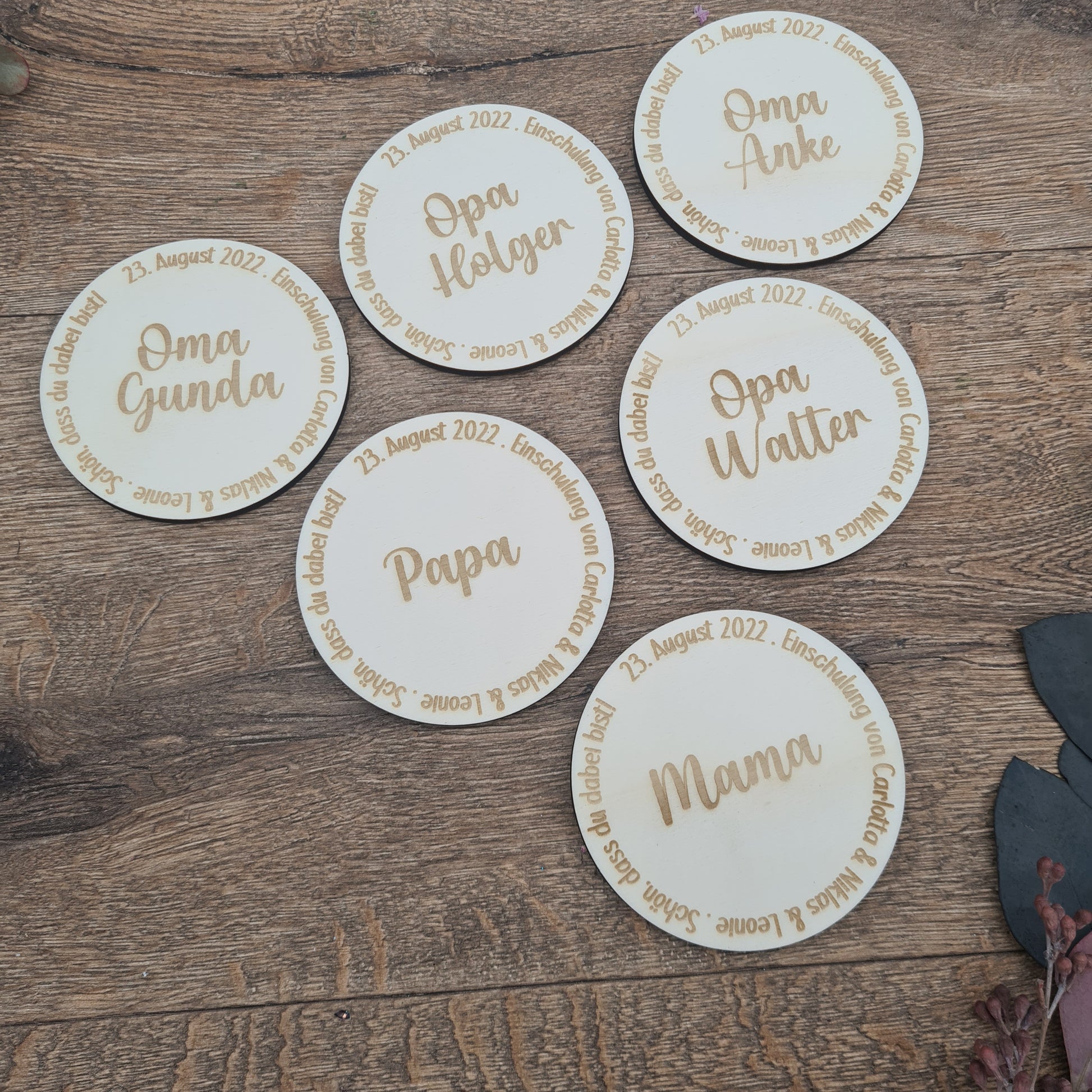 Diese 20 cm großen Holzschilder werden aus 4 mm starkem Naturholz hergestellt, mit modernster Lasertechnik geschnitten und graviert.