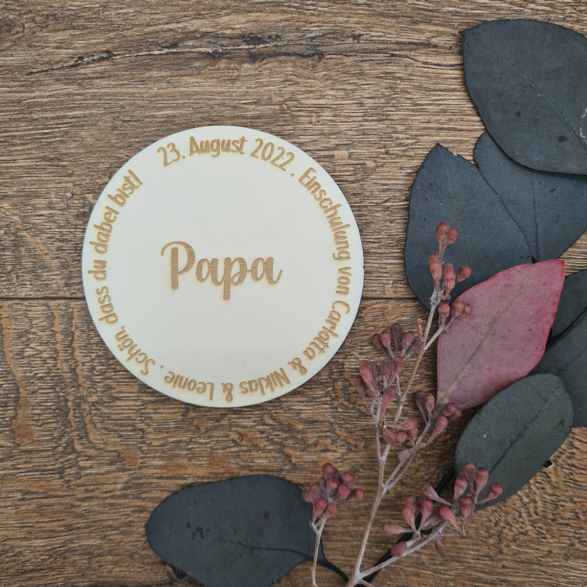 Die hölzernen Erinnerungsstücke können mit dem Namen des Kindes, dem Datum und einer Nachricht der Eltern individuell gestaltet werden.